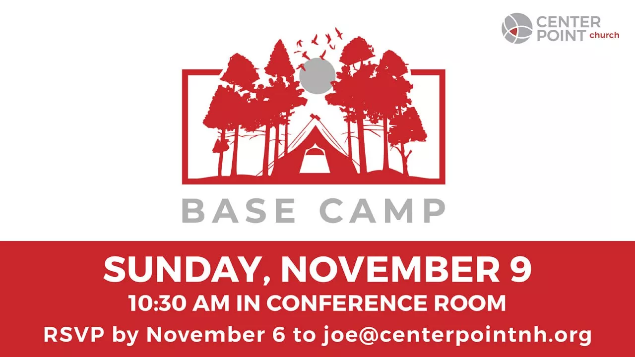 Base Camp is returning this Sunday Nov. 9th at 10:30 am in the Conference Room off of the Commons. Are you new, or relatively new to CenterPoint? Base Camp is an excellent first or next step in learning who we are as a church and find out how you can participate in the life of the church in community.
