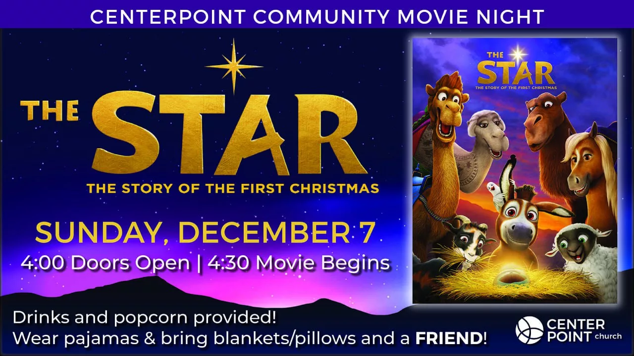 MARK YOUR CALENDAR FOR THE CENTERPOINT COMMUNITY MOVIE NIGHT ON DEC. 7TH. The Star – Story of the First Christmas will be the Christmas Family Movie being shown at CenterPoint this year. Details to follow!!!!